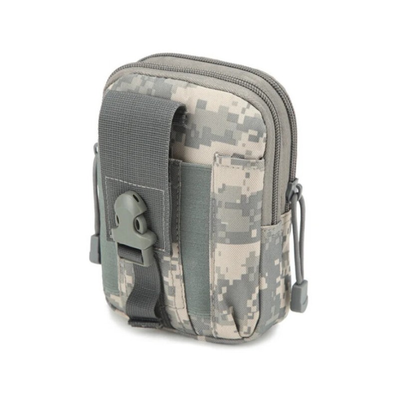 Обладнана кріпленнями системи Молле з металевими кнопками для підвішування на ремінь, рюкзак, також є петля для карабіна.