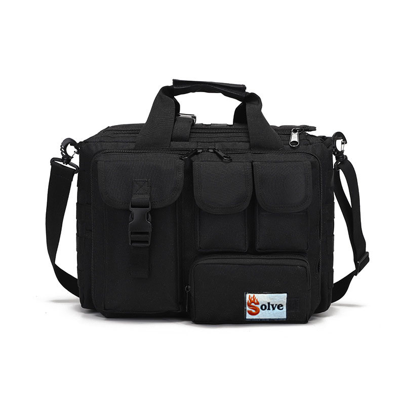 Велика дорожня тактична сумка для документів і ноутбука Чорна Solve KT6003602 MOLLE у комплекті з сумкою йдуть 2 шеврони-один український прапор,другий Solve Ця тактична сумка для зберігання розроблена з урахуванням великого об'єму, водонепроникності та стійкості до зношування, функціонуючи як сумка для подорожей з однією лямкою та можливістю розширення за допомогою системи кріплення MOLLE. Ось її ключові характеристики: Великий об'єм: Просторий інтер'єр дозволяє зберігати різні предмети, що робить сумку придатною для тривалих поїздок або перенесення широкого спектра спорядження та обладнання. Водонепроникність і стійкість до зношування: Виготовлена з водонепроникних матеріалів, щоб захистити вміст від вологи та погодних умов, забезпечуючи довговічність та тривалий термін служби. Матеріали, стійкі до зношування, підвищують довговічність сумки, роблячи її придатною для використання в суворих умовах на відкритому повітрі. Однолямковий дизайн: Розроблена для носіння через одне плече, що забезпечує легкість пересування та швидкий доступ до речей під час руху. Зручність для подорожей та ручної перенесення: Оснащена ручкою для зручної транспортування, як для коротких поїздок, так і для повсякденного використання. Підходить як дорожня сумка завдяки просторому інтер'єру та універсальним варіантам перенесення. Розширювана система кріплення MOLLE: Оснащена точками кріплення MOLLE, що дозволяє збільшити об'єм перенесення шляхом прикріплення додаткових модульних підсумків або аксесуарів. Надає можливості для налаштування відповідно до індивідуальних вподобань і конкретних вимог до спорядження. Міцна конструкція: Посилені шви та міцна фурнітура підвищують загальну довговічність сумки, забезпечуючи її здатність витримувати важкі навантаження та часте використання. Універсальне використання: Підходить для різних видів діяльності та середовищ, включаючи пригоди на відкритому повітрі, тактичні місії, подорожі та повсякденне використання. Забезпечує гнучкість в організації та перенесенні необхідних речей і спорядження для різних ситуацій. У цілому, ця тактична сумка для зберігання поєднує функціональність, довговічність та універсальність, роблячи її практичним вибором для тих, хто шукає надійне рішення для зберігання та транспортування своїх речей у різних умовах. Характеристики: Вага: 0,95 кг Висота: 27 см Ширина: 35 см Довжина: 14 см