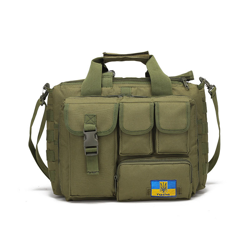 Велика дорожня тактична сумка для документів і ноутбука олива MOLLE Solve KT6003601 у комплекті з сумкою йдуть 2 шеврони-один український прапор,другий Solve Ця тактична сумка для зберігання розроблена з урахуванням великого об'єму, водонепроникності та стійкості до зношування, функціонуючи як сумка для подорожей з однією лямкою та можливістю розширення за допомогою системи кріплення MOLLE. Ось її ключові характеристики: Великий об'єм: Просторий інтер'єр дозволяє зберігати різні предмети, що робить сумку придатною для тривалих поїздок або перенесення широкого спектра спорядження та обладнання. Водонепроникність і стійкість до зношування: Виготовлена з водонепроникних матеріалів, щоб захистити вміст від вологи та погодних умов, забезпечуючи довговічність та тривалий термін служби. Матеріали, стійкі до зношування, підвищують довговічність сумки, роблячи її придатною для використання в суворих умовах на відкритому повітрі. Однолямковий дизайн: Розроблена для носіння через одне плече, що забезпечує легкість пересування та швидкий доступ до речей під час руху. Зручність для подорожей та ручної перенесення: Оснащена ручкою для зручної транспортування, як для коротких поїздок, так і для повсякденного використання. Підходить як дорожня сумка завдяки просторому інтер'єру та універсальним варіантам перенесення. Розширювана система кріплення MOLLE: Оснащена точками кріплення MOLLE, що дозволяє збільшити об'єм перенесення шляхом прикріплення додаткових модульних підсумків або аксесуарів. Надає можливості для налаштування відповідно до індивідуальних вподобань і конкретних вимог до спорядження. Міцна конструкція: Посилені шви та міцна фурнітура підвищують загальну довговічність сумки, забезпечуючи її здатність витримувати важкі навантаження та часте використання. Універсальне використання: Підходить для різних видів діяльності та середовищ, включаючи пригоди на відкритому повітрі, тактичні місії, подорожі та повсякденне використання. Забезпечує гнучкість в організації та перенесенні необхідних речей і спорядження для різних ситуацій. У цілому, ця тактична сумка для зберігання поєднує функціональність, довговічність та універсальність, роблячи її практичним вибором для тих, хто шукає надійне рішення для зберігання та транспортування своїх речей у різних умовах. Характеристики: Вага: 0,95 кг Висота: 27 см Ширина: 35 см Довжина: 14 см