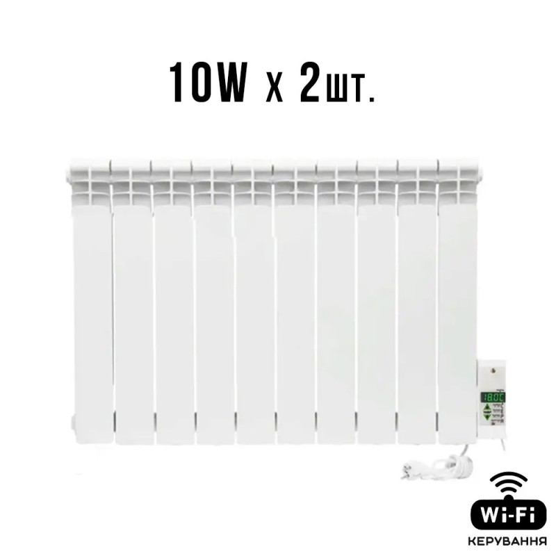 Розрахована на площу 28-32 м.кв з конфігурацією площі кімнат (16+16 м.кв) на два електрорадіатори ELECTRO серії W/Wi-Fi таких типорозмірів посекційно (10W/10W) з потужністю (950+950 Вт/г) Підключення до звичайної розетки 220В, ККД до 100%.