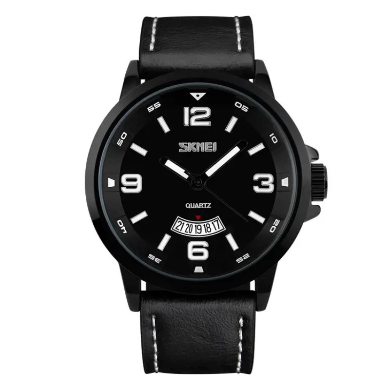 У SKMEI 9115 класичні традиції виготовлення наручних хронометрів втілені в чистому вигляді. Еко шкіряний ремінець делікатно і щільно охоплює зап'ястя, а завдяки фосфоресційному покриттю контрастні часникові маркери циферблату та стрілки дозволяють визначати годину навіть у темряві.Зробіть вибір на користь SKMEI 9115 – аксесуарів для справжніх чоловіків!