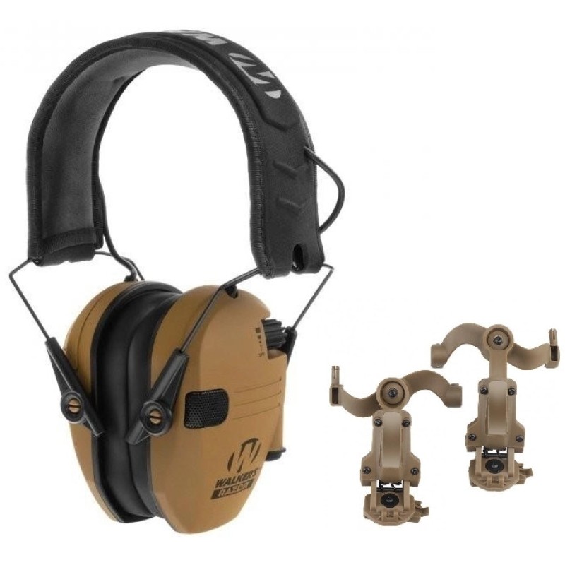 Тактичні навушники на шолом Walkers Razor + кріплення OPS Core Чебурашки Койот