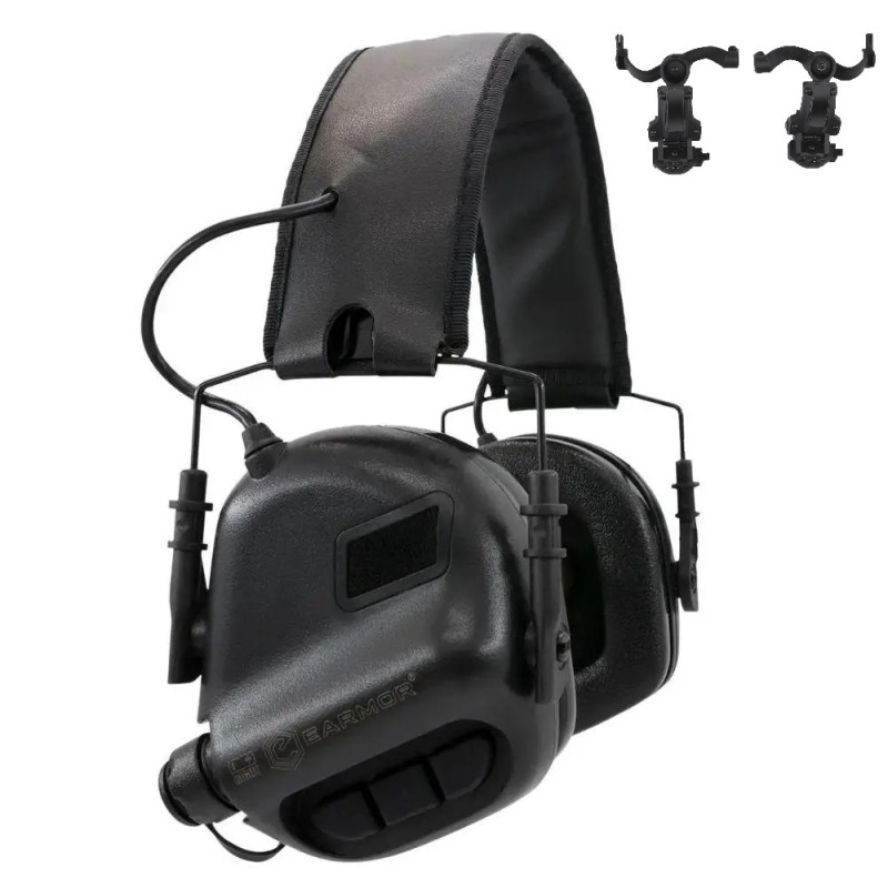 Тактичні активні навушники Earmor М32 + кріплення чебурашка OPS Core Чорний