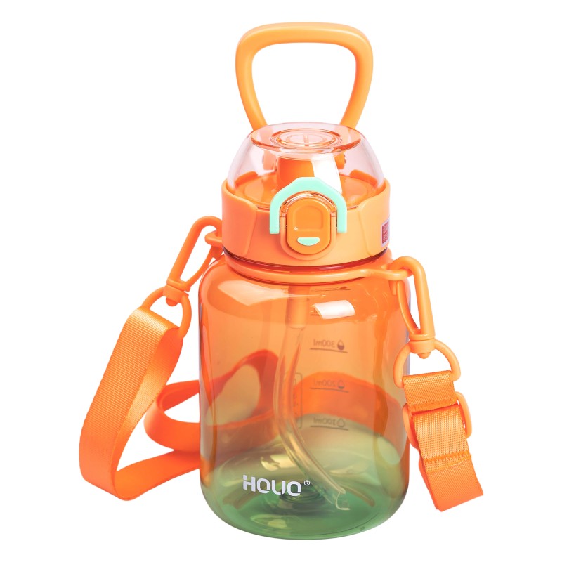Пляшка для напоїв з ремінцем та трубочкою YIWU 700 мл Помаранчевий (HP-14-32O)