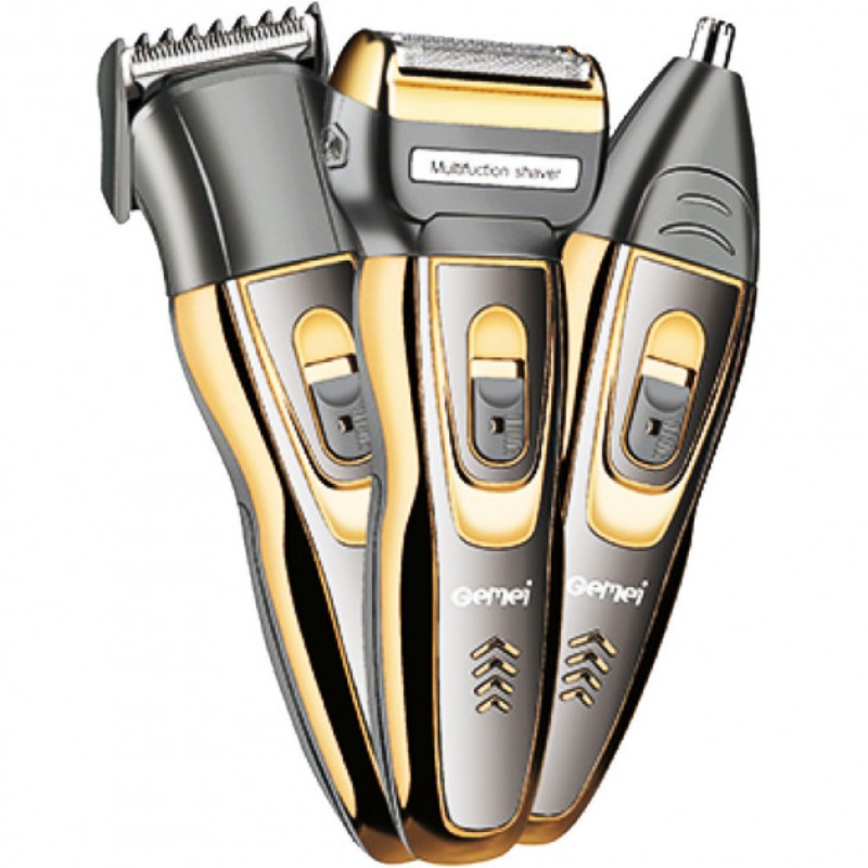 Многофункціональний комплексний прилад Gemei GM 595 для стрижки волосся та бороди. Підходить для вусів, носа та бороди, для тіла (бодігромер) Ергономічний, легкий і компактний дизайн Регульована насадка 3 режими від 3 до 6 мм з кроком в 1 мм. Змінні головки: триммер для носа, триммер для бороди, бритва Ріжучі леза, сплав титану з високою точністю. для гігієни для носа та вух. Працює від мережі та акумулятораХарактеристики: Виробник: ProGemei Модель: GM-595 Потужність: 3 ват Матеріал: нержавіюча сталь, пластик Знімні акумулятори Час роботи від акумулятора: 60 хвилин Живлення: 220-249 В5 і вух, бритва, машинка для стрижки) Шнур для зарядки Щітка Олія