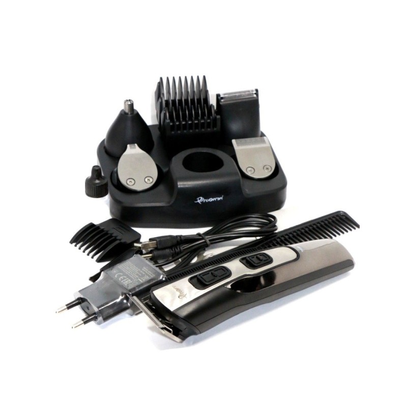 Pro Gemei GM 592 9 в 1 чудовий подарунок для сучасного чоловіка, який стежить за своєю зовнішністю та любить у всьому акуратність та організованість. На цілісній підставці грамотно розташована сама машинка Pro Gemei GM 592 та супутні їй аксесуари. Кожна з наявних з десяти насадок у наборі має своє суворе призначення, завдяки цьому комплекту чоловік може підтримувати в ідеальному стані свої вуса і бороду, регулювати довжину волосся, що зістригається, а також делікатно позбавлятися зайвого волосся в носі і вухах.