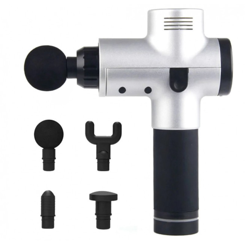 Акумуляторний масажер для тіла 4 насадки Fascial Gun KH-320 Сірий (VD201605923)