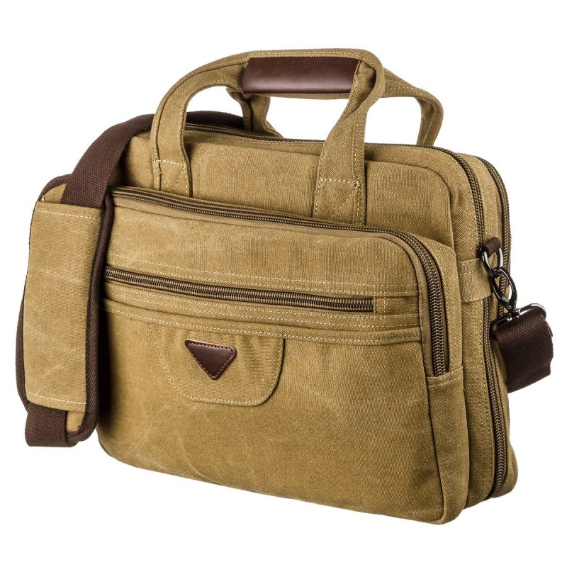 Сумка для ноутбука на два відділення не маркого кольору хакі. Ця модель за бажання легко стирається. Виріб не вимагає особливого догляду. У сумку міститься стандартний ноутбук діагоналлю 15.6 дюймів. Сумка має два відділення, і крім ноутбука ви легко помістите до неї документи та інші необхідні речі. Виріб можна носити через плече і в руках. Якщо ви шукаєте зручну, але доступну сумку для ноутбука – рекомендуємо вам цю модель. Сумка доступна в нашому магазині у кількох кольорах.