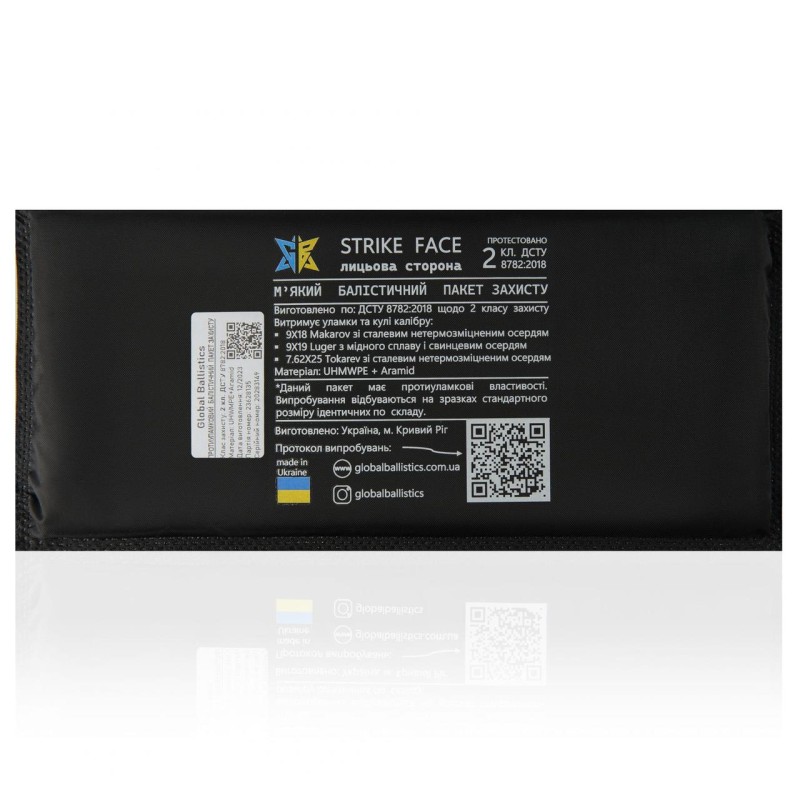 Балістичний пакет 2 класу ДСТУ, що складається з шарів НВМПЕ та арамідного волокна, забезпечує надійний захист від куль пістолета Токарєва (ТТ) та осколків снарядів. Це робить його ідеальним вибором для використання в умовах підвищеної небезпеки, забезпечуючи високий рівень захисту та комфорт при носінні.