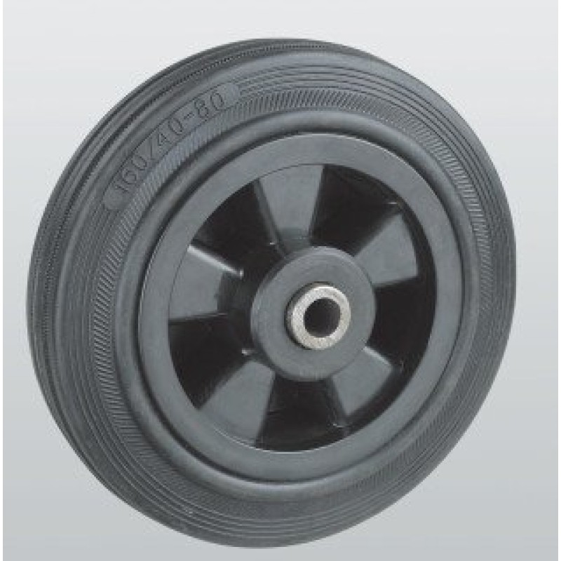 Обод колеса відлитий з поліпропілену. Лита гумова шина роликовий підшипник, що не вимагає обслуговування. Твердість 85 Shore A. Діаметр коліс: 80 мм, 100 мм, 125 мм, 140 мм, 150 мм, 160 мм, 180 мм, 200 мм, 250 мм.