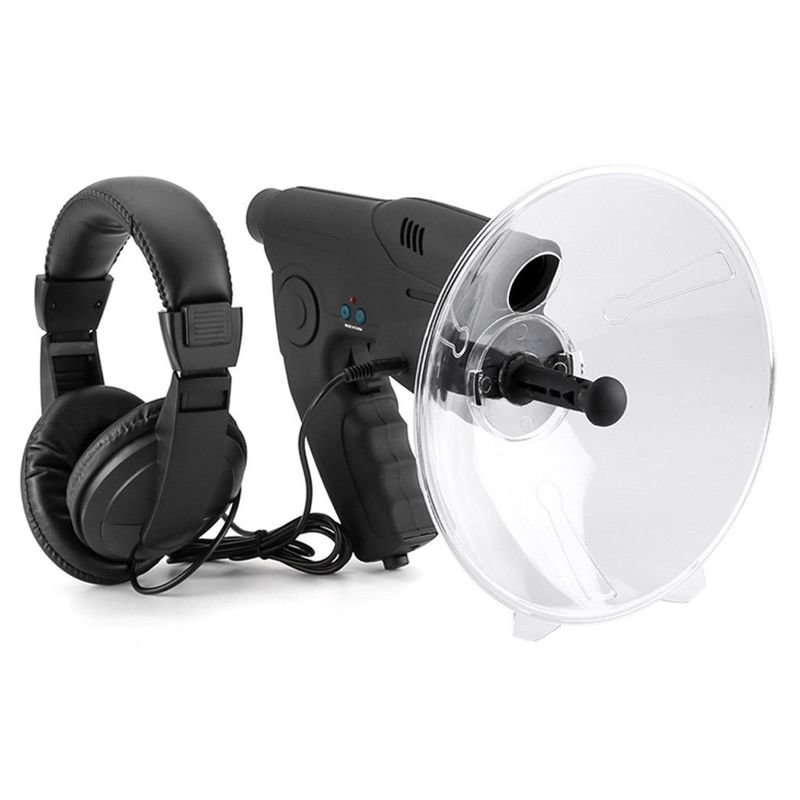 Слухайте звуки птахів і диких тварин на відстані до 50 метрів Спрямований мікрофон Супер Вухо 100 - це цікава розробка для прослушки на відстані. Він призначений для посилення і прослуховування звуків птахів, диких тварин та інших звуків на відстані до 50 метрів. Він дозволяє чути навіть найслабший спів птахів, неголосну розмову або шуми. Мікрофон направленої дії Супер Вухо 100 складається з основного блоку, що уловлює пластикової тарілки, діаметром 20 сантиметрів і навушників, через які Ви будите чути посилені звуки. УВАГА! Так як тарілка даного мікрофона, що вловлює звуки, зроблена з тонкого пластику, який тендітний і легко дряпається - на тарілці можуть бути невеликі подряпини, тріщинки або потертості, що не впливають на якість її роботи і вловлювання звуків, але трохи псує зовнішній вигляд тарілки. Просимо врахувати цю інформацію при замовленні і якщо для Вас важливіший ідеальний зовнішній вигляд тарілки, а не функціональність - просимо не замовляти даний товар. В основному блоці знаходиться вся електронна частина, ручка для тримання, в яку вставляється батарейка, високочутливий мікрофон, регулятор чутливості і монокуляр з 8-ми кратним наближенням для націлювання мікрофона. До основного блоку приєднується уловлююча пластикова параболічна тарілка, яка необхідна для збільшення спрямованості мікрофона. Завдяки параболічній формі, що вловлюються звуки відбиваються від стінок тарілки і направляються на чутливий мікрофон, де звук посилюється і прямує на навушники. Основне призначення цього спрямованого мікрофона - це слухання звуків птахів або диких тварин на природі та отримання насолоди і розслаблення. Це не професійне обладнання, а більше як іграшка, він не прослуховує через стіни і не є спец технікою. Може бути використаний дітьми від 8 років. Замовити спрямований мікрофон Супер вухо 100 можна в нашому інтернет-магазині з доставкою по всій Україні післяплатою з оплатою при отриманні. Основні функції та особливості Заявлена виробником дальність уловлювання звуків до 50 метрів - така відстань може бути досягнуто в тихому місці, на природі, де мінімум сторонніх шумів. У міських умовах, де багато шуму - він неефективний і в таких умовах його реальна дальність складає 15 - 20 метрів. Регулювання рівня підсилення - за допомогою коліщатка на блоці підсилювача можна відрегулювати ступінь посилення звуків. Не може прослуховувати через стіни - принцип даного мікрофона заснований на посиленні існуючого тихого звуку. Якщо Ви своїм вухом взагалі не чуєте потрібний звук, то спрямованому мікрофону теж нічого буде посилювати. Вбудований оптичний монокуляр з 8 Х кратним наближенням - дозволяє точно направити мікрофон на джерело звуку. Якісні накладні навушники в комплекті, які дозволяють чітко чути посилені звуки. За допомогою спеціального розгалуджувача - можна підключити до нього окремий диктофон і записувати на нього почуті звуки. Вбудований диктофон для реєстрації звуку - дозволяє записувати до 12 секунд запису (новий аудіозапис записується поверх старої). Можливість прослуховування запису через навушники. Технічні характеристики Рівень підсилення: до 107 dB. Дальність вловлення звуків: до 50 метрів (залежить від гучності фонових сторонніх шумів). В шумних або міських умовах реальна дальність 15-20 метрів. Кут спрямованості мікрофона: 10 гра