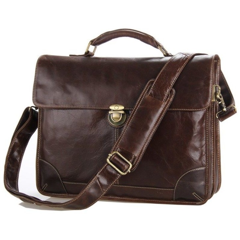 Якісна чоловіча шкіряна сумка портфель коричневого кольору. Аксесуар розрахований для повсякденного використання, ділових зустрічей та переговорів. Такий портфель чудово підходить для зберігання папки з паперами формату А4.