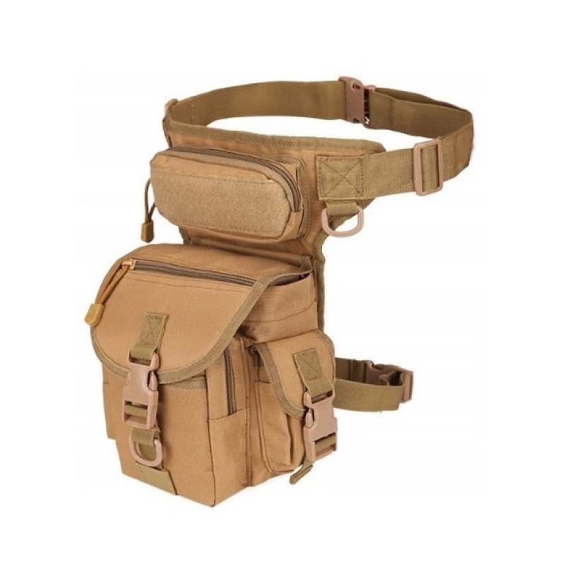 Тактична сумка на бедро, на ногу, чоловіча, Койот D3-0005-B3 Матеріал: оксфорд 600D Водонепроникний Розмір: 30.1 см х 12,5 см х 22 см (максимальні розміри) Об'єм: 8л Вид: безкаркасний Призначення: для перенесення особистих речей, багатофункціональна Сумка тактична набедрена поясна виконана із оксфорда 600D. Це достатньо міцний матеріал, який має стійкість до вологи. У сумці є вмісне основне відділення. Передбачені два невеликі бокові кармани, один на блискавці, інший закривається на фастекс. На зовнішний стороні першого розміщена система кріплення M.O.L.L.E. По боках одного з бокових карманів є два вузких наскрізних кармани для ручок або довгомірних предметів. На лицьовій стороні сумки є ще два кармани на блискавці. Верхній продовговатий карман має липучку, яка дає можливість прикріпити нашивку чи інший необхідний предмет, який має відповідну липучку. Сумка має дві лямки з фастексом та можливістю регулювати довжину. За допомогою верхньої лямки сумка кріпиться на пасок, нижньої-на ногу. Дуже зручна та практична модель.