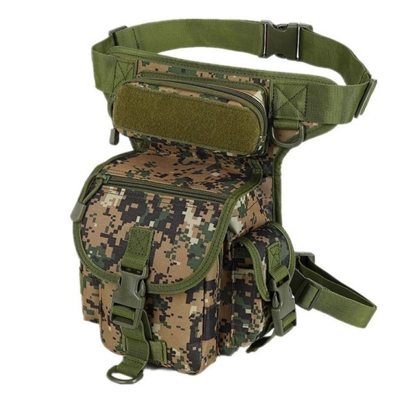 Тактична сумка на бедро, на ногу, чоловіча, Темний піксель D3-0005-B2 Матеріал: оксфорд 600D Водонепроникний Розмір: 30.1 см х 12,5 см х 22 см (максимальні розміри) Об'єм: 8л Вид: безкаркасний Призначення: для перенесення особистих речей, багатофункціональна Сумка тактична набедрена поясна виконана із оксфорда 600D. Це достатньо міцний матеріал, який має стійкість до вологи. У сумці є вмісне основне відділення. Передбачені два невеликі бокові кармани, один на блискавці, інший закривається на фастекс. На зовнішний стороні першого розміщена система кріплення M.O.L.L.E. По боках одного з бокових карманів є два вузких наскрізних кармани для ручок або довгомірних предметів. На лицьовій стороні сумки є ще два кармани на блискавці. Верхній продовговатий карман має липучку, яка дає можливість прикріпити нашивку чи інший необхідний предмет, який має відповідну липучку. Сумка має дві лямки з фастексом та можливістю регулювати довжину. За допомогою верхньої лямки сумка кріпиться на пасок, нижньої-на ногу. Дуже зручна та практична модель.