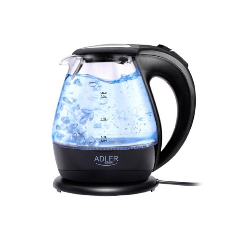 Чорний, елегантний дизайн і яскраве синє підсвічування чайника Adler AD 1224, красиво виглядатимуть на Вашій кухні, притягуючи всю родину на чаювання.