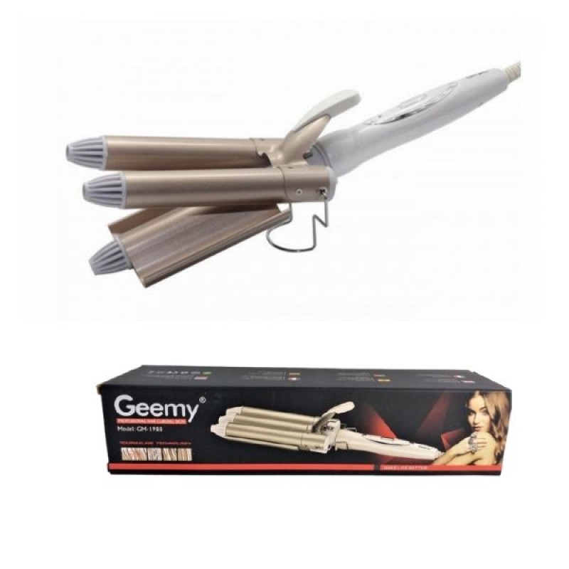 Потрійна плойка Geemy GM 1988 - це сучасний перукарський інструмент для створення хвилі на волоссі. Він дозволяє створювати укладання з локонами різного ступеня пружності. Красиві локони виходять із-за приміщення пасма на одну з поверхонь плойки та придавлювання волосся двома іншими. Фіксація відбувається під впливом високої температури.