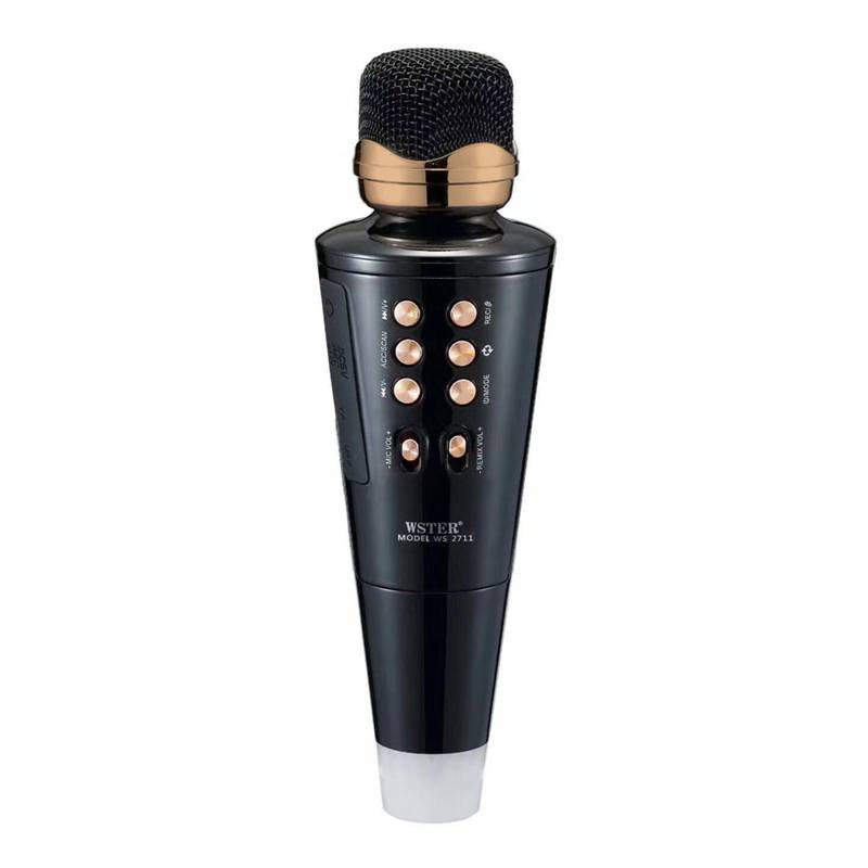 Бездротовий караоке-мікрофон WSTER WS2711 можна використовувати як MP3-плеєр, аудіо колонку або караоке в комбінації зі смартфоном або планшетом, і навіть як мобільний зарядний пристрій в екстрених ситуаціях. Модель оснащена USB портом, роз'ємом для micro SD, AUX та Bluetooth. Бездротовий караоке-мікрофон WSTER WS2711 відмінно підійде для домашнього використання, як подарунок дитині або для професійної експлуатації провідним на свято або інше свято.