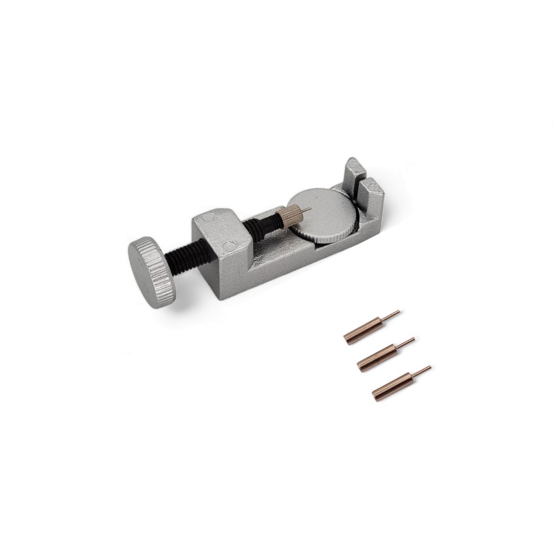 Інструмент для укорочення сталевого браслета годинника дає змогу легко видалити зайві ланки (лінки) ремінця, щоб змінити його довжину без походу в годинникову майстерню. На відміну від пластикових "одноразових" інструментів, призначених один раз підігнати ремінець, цей знімач повністю зроблений з металу і комплектується трьома змінними "жалами".