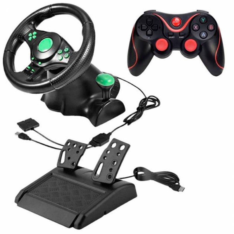 Ігрове гоночне кермо з педалями та коробкою передач Fun Game Vibro Driver Wheel 23 см для PC/PS3/PS2 3в1 Чорний та Бездротовий геймпад