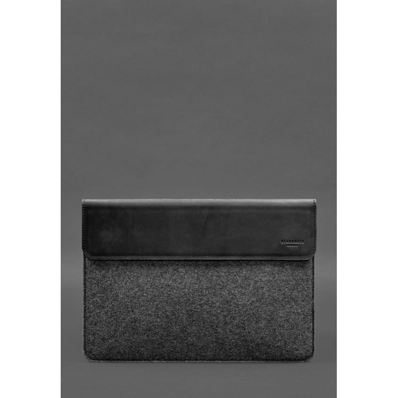 Чохол-конверт із клапаном шкіра+фетр для MacBook 13 Чорний Crazy Horse BlankNote