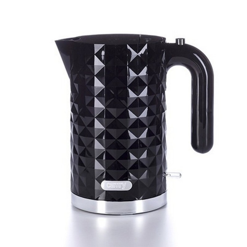 Чайник Camry CR 1269 потужністю до 2200 Вт встановлює нові тенденції в дизайні побутової техніки. Корпус електричного чайника виконаний із якісного харчового пластику чорного кольору, має оригінальну циліндричну форму із текстурованим орнаментом із зовнішнього боку. Він оснащений зручною пластиковою ручкою, де розташована кнопка відкриття кришки. Нагрівальний елемент прихований дисковий із високоякісної нержавіючої сталі. Внизу розташований вмикач з індикатором живлення.
