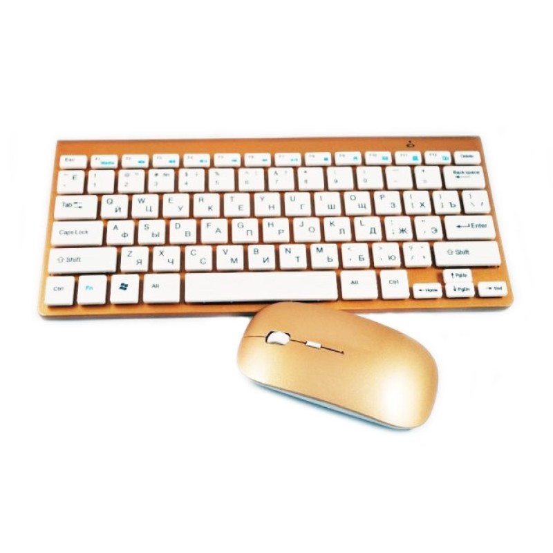 Бездротова клавіатура золота, ультратонка і оптична мишка – стильний та зручний вибір. Такий комплект чудово підійде для настільного користування. Зроблений він у красивому золотому кольорі, що додасть родзинки будь-якому інтер'єру.
