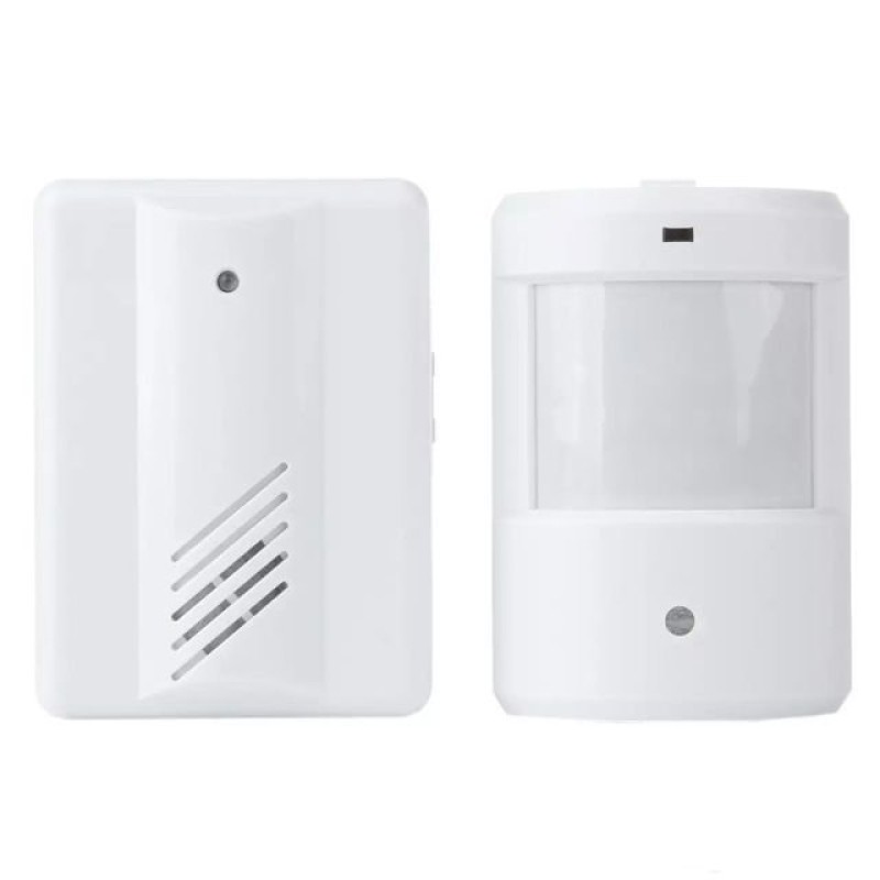 Безпровідний дверний дзвінок з інфрачервоним датчиком руху Бездротовий датчик руху з дзвінком - оповіщувач Leshp DD1407 - призначений для звукового оповіщення бездротовим шляхом на відстані до 100 метрів про появу людини перед датчиком руху. Його можна використовувати наприклад в магазині, для сповіщення про нового відвідувача, якщо ваше робоче місце не дозволяє бачити вхідні двері. Або дзвінок - оповіщувач можна поставити в сторожку охоронця, а бездротовий датчик руху навпроти вхідних дверей. Поява в зоні огляду датчиком людей, тварин або рухомих об'єктів масою понад 10 кг викликають його спрацьовування і передачу сигналу на приймач, який відтворює звук, схожий на дверний дзвінок. Комплект пристрою складається з інфрачервоного датчика руху з вбудованим бездротовим передавачем і приймача зі звуковим динаміком в пластмасових корпусах компактних розмірів. Зв'язок між датчиком руху і приймачем - оповісником відбувається по радіоканалу. Максимальна відстань між ними не повинна перевищувати 100 метрів (при прямій видимості). Кожна перешкода між ними у вигляді стін, перегородок, меблів та інших предметів - зменшують реальну дальність передачі сигналу. Інфрачервоний датчик руху має дальність виявлення руху до 8 метрів, а приблизний кут захоплення становить 60 градусів. Він працює автономно від батарейки 9 вольт типу "Крона", якої вистачить на декілька місяців роботи. Ви можете встановити його на стіну, навпроти вхідних дверей, навпроти вікна, в коридорі та інших місцях, де потрібно сповіщати про рух. Кріплення датчика відбувається на кульовий кронштейн на стіну за допомогою 2-х шурупів. Кронштейн дозволяє легко відрегулювати горизонтальне і вертикальне положення датчика і кут його нахилу. Приймач - оповіщувач бездротового дзвінка з вбудованим динаміком теж є автономним і живиться від 2-х пальчикових батарейок типу АА. Його можна переносити з собою або встановити в будь-якому зручному місці, на його корпусі ззаду є кріплення на пояс. Гучність сигналу регулюється перемикачем збоку і має два рівні - низький "LO" і високий "HI", який Ви вибираєте на власний розсуд. На корпусах датчика і приймача є світлові індикатори, які сигналізують про роботу і низький заряд батарей. Бездротовий дзвінок - оповіщувач з датчиком руху Leshp DD1407 можна застосовувати вдома, в офісі, магазині або в інших місцях, де потрібно дізнаватися про появу руху. Він простий у використанні, його встановлення не вимагає спеціальних навичок, до роботи він готовий відразу після встановлення елементів живлення - не потрібно протягувати дроти або викликати фахівця. Основні особливості і характеристики Повністю бездротова технологія - передача сигналу від датчика руху до приймача - оповіщення відбувається по радіоканалу. Для спрацьовування дзвінка не потрібно натискати на кнопку - звукове сповіщення відбувається автоматично, коли перед датчиком руху з'являється об'єкт, що рухається. Відстань передачі радіосигналу між датчиком і приймачем близько 100 метрів при прямій видимості - кожна перешкода у вигляді стін, перегородок, меблів та інших об'єктів зменшують реальну дальність передачі. Дальність виявлення руху датчиком - до 8 метрів, приблизний кут детектування - 60 градусів. 2 рівня гучності звукового оповіщення на приймачі - середня гучність "Lo" і висока гучність "Hi". Живлення датчика 