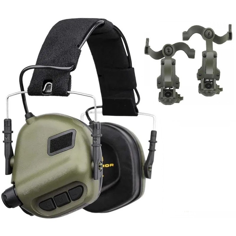 Тактичні навушники EARMOR М31 та кріплення на шолом OPS Core чебурашка Оливковий (2046553882)