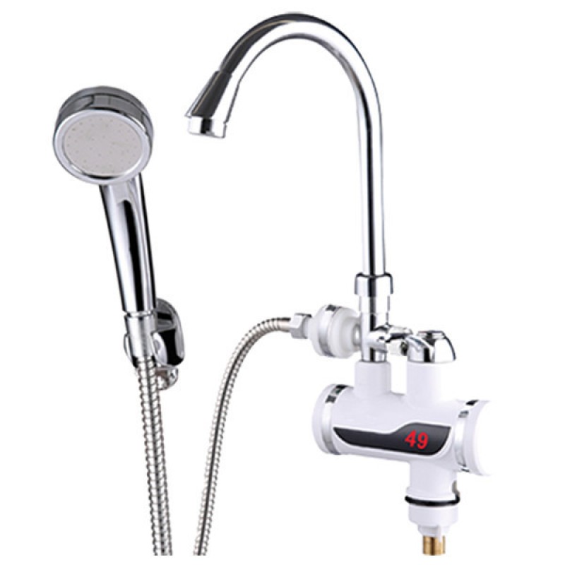 Проточний водонагрівач ZERIX ELW08-E з індикатором температури (ZX0454). Проточний водонагрівач із душем Зерікс має низку переваг: зменшення витрати води, майже миттєве нагрівання, простий монтаж, невеликі витрати електроенергії. Корпус виготовлений із термостійкого пластику, який мало чим поступається у міцності моделям із металу. Проточний водонагрівач працює від мережі і підходить для установки на дачі, в квартирі, адмін будинках.