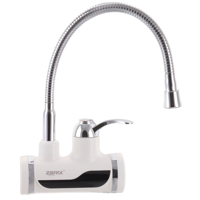 Завдяки своїй strong>потужності 3kW водонагрівач ZERIX здатний нагріти воду до 60°С за менш ніж 5 сек. Суттєво економічніше БОЙЛЕРА! Кран з підігрівом води дозволить Вам у будь-який час використовувати гарячу воду на кухні чи ванній. Наявність індикатора температури дасть Вам можливість контролювати нагрівання води. Гнучкий вилив електричного крана водонагрівача обертається на 360 градусів, його дуже зручно використовувати як у звичайній раковині, так і в мийці з двома чашами.