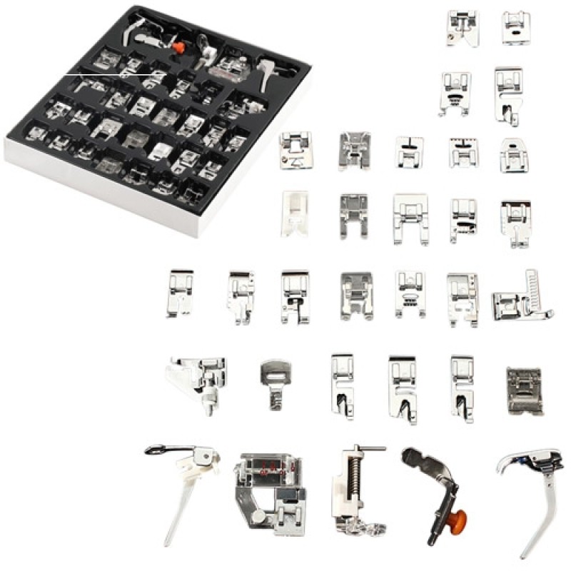 Професійний набір швачки допоможе вам виконати практично будь-яку швейну операцію. Набір включає 32 фути для різноманітних цілей (без повторень). В процесі ви можете вибрати лапку для створення спеціального стібка, окантовки, вишивки, підшивки, пришивання бісеру або пришивання на блискавці.