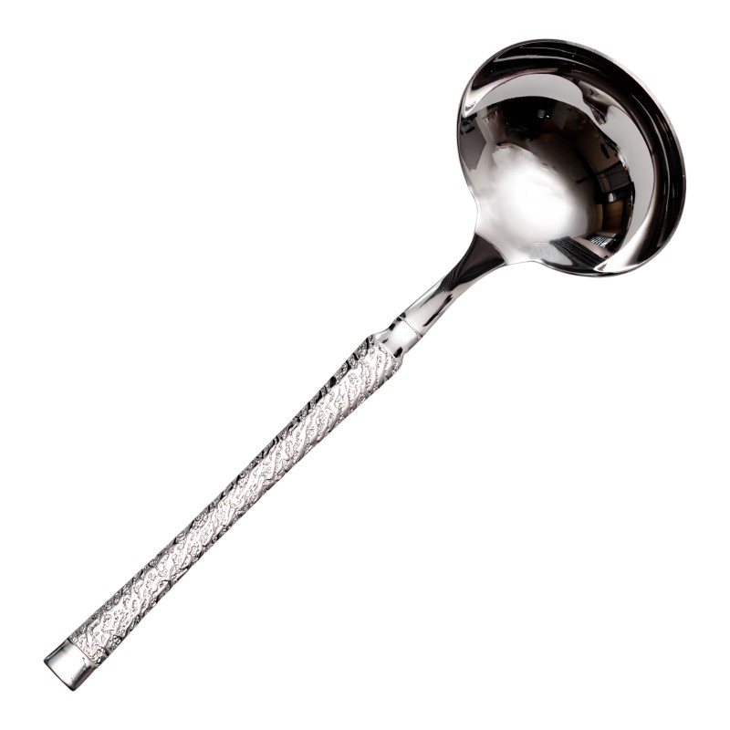 Сервірувальний ополоник – незамінний аксесуар для подачі перших страв, рагу під час святкових заходів. Половник має стильний дизайн з молотковою текстурою та відмінно підійде для порційного сервірування в ресторанах, на офіційних та сімейних урочистостях. Аксесуар виготовлений із якісної нержавіючої сталі, має оптимальні розміри для акуратної подачі страв.