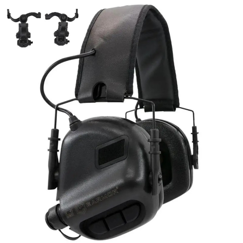 Тактичні активні навушники Earmor М31 + кріплення на шолом OPS Core чебурашка Чорний