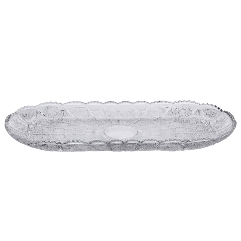 Овальне скляне блюдо для закусок — елегантний і практичний аксесуар для сервірування різноманітних страв. Його витончені лінії та прозоре скло додають стилю будь-якому столу, ідеально підходить для подачі канапе, сирів, фруктів або інших закусок.