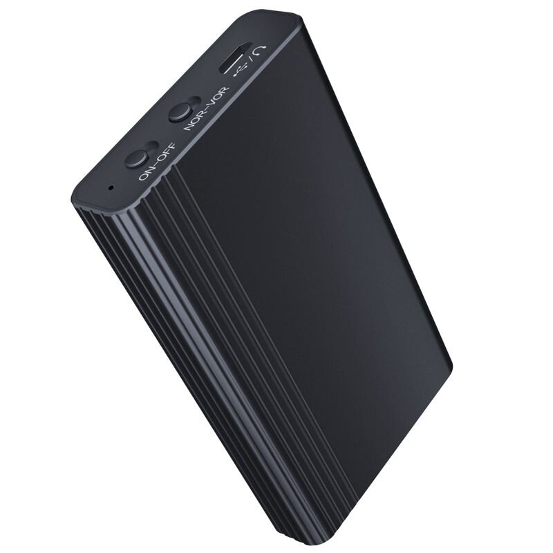 Цифровий диктофон із великим часом роботи до 500 годин із магнітом Цифровий диктофон Sttwunake L1 безсумнівно стане для вас незамінним придбанням, якщо вам потрібен компактний диктофон з великим тривалим часом запису, гарною чутливістю мікрофона, простим управлінням, вбудованим в корпус магнітом і записом на змінні micro SD карти пам'яті. Він має 2 режими запису: постійну та автоматичну з активацією звуком. Прослухати запис можна, підключивши його до ПК або вийнявши картку пам'яті із записами та прослухавши з неї. Цей цифровий диктофон у компактному металевому корпусі ви можете прикріпити на будь-яку металеву поверхню завдяки вбудованому в корпус сильному неодимовому магніту. Усередині диктофона знаходяться чутливий мікрофон і великий літієвий акумулятор на 500 (!) годин безперервної роботи, завдяки якому ви зможете записати звук з максимальної відстані до 8 метрів протягом тривалого часу. Для того, щоб нічого не втратити з інформації є функція авто збереження записаного кожні 120 хвилин, підтримує запис на micro SD карти пам'яті до 128 Гб включно. Управління цим диктофоном просте, лише двома перемикачами живлення та вибору режиму запису, який можна налаштувати як звичайний постійний запис або автоматичний запис з голосовою активацією. Його можна використовувати як МР3 плеєр, під'єднавши microUSB навушники(в комплект не входять). Диктофон Sttwunake L1 легко підключається до комп'ютера для завантаження записаних файлів, а також підтримує з'єднання OTG з телефоном. Основні особливості Величезний час автономної роботи до 500 годин завдяки великому літієвому акумулятору. Чутливий мікрофон дозволяє розбірливо записати розмови з відстані до 8 метрів. 2 режими запису: постійний та автоматичний запис з активацією звуком (режим VOR). Міцний металевий корпус із вбудованим неодимовим магнітом, що дозволяє закріпити його на будь-яку металеву поверхню. Автоматичне збереження файлів запису кожні 120 хвилин. Просте керування, всього 2 кнопки. Запис на змінні micro SD карти пам'яті до 128 Гб. Просте підключення до комп'ютера та OTG підключення до телефону для завантаження чи прослуховування файлів. Коротка інструкція з експлуатації Перед використанням зарядіть диктофон від блока живлення 5 Вольт або USB-порта комп'ютера. При повному заряді почергово блиматиме синій та червоний індикатор. Зверніть увагу на те, що диктофон повинен заряджатися лише у вимкненому стані. Вставте у слот картку пам'яті micro SD до 128 Гб. Для початку запису переведіть перемикач "ON-OFF" у положення "ON". Після триразового миготіння червоного індикатора диктофон розпочне запис. Щоб завершити запис - переведіть перемикач у положення "OFF". Після миготіння індикатора запис буде збережено. Для перемикання між режимами звичайного запису (NOR) і автоматичним записом з активацією звуком (VOR) - використовуйте перемикач "NOR-VOR". Для прослуховування записів - підключіть його USB кабелем до ПК і прослухайте записи будь-яким плеєром. Індикація заряду батареї відбувається при увімкненні. Якщо синій та червоний індикатори блимають по одному разу заряд становить 25% і менше, двічі – 50%, 3 рази – 75%, 4 рази означають повний акумулятор. Технічні характеристики Формат запису: WAV. Формати відтворення: WAV, MP3. Бітрейт записи: 192 кбіт / сек. Час постійного запису на картку пам'яті, залежно від об'єму: - 16 Гб - 192 години запису. - 32 Гб - 384 години запису. - 64