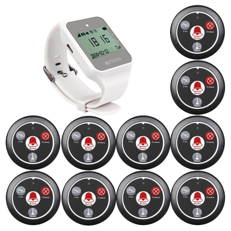 Система виклику офіціанта бездротова з годинником - пейджером Retekess TD108 + 10 чорних кнопок (з кнопкою КАЛЬЯН)