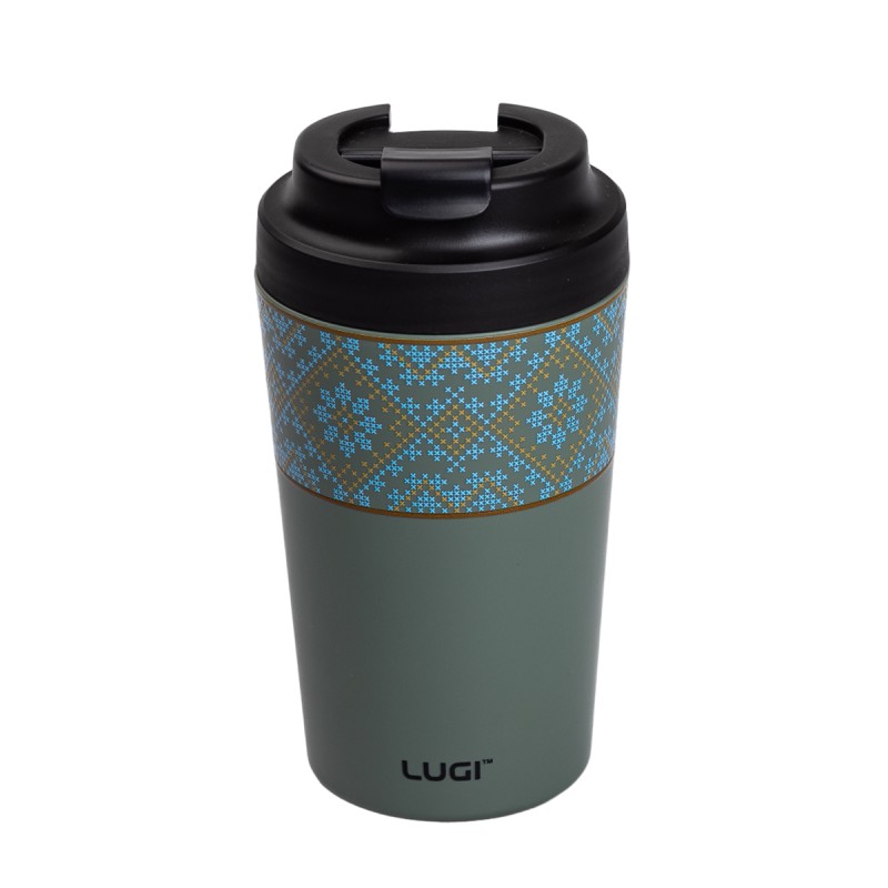 Термочашка з кришкою на клямці YIWU Вишиванка 380 мл Сіро-зелений (HP-14-50GR)