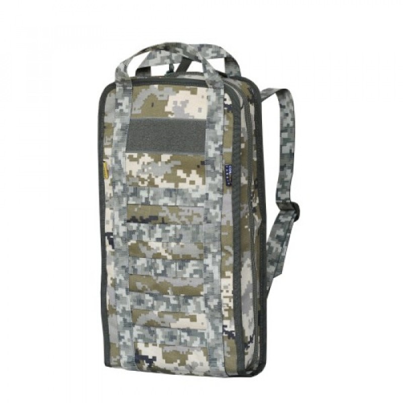 Медичний тактичний рюкзак Tactical Extreme 10L українського виробництва об'ємом 10л - Розрахований для комплекту медикаментів та медичного приладдя, які необхідні для надання першої допомоги в польових умовах. Має систему швидкого відкриття основного відділення та підсумків. Усередині рюкзак має кілька рядів подвійних еластичних осередків для фіксації кровоспинних турнікетів, перев'язувальних матеріалів, рукавичок, ножиць, маркерів, інклюзивних наклейок тощо. Окрема захищена кишеня з осередками для ампул та шприців. Дві великі сітчасті кишені швидкого відкриття з додатковими еластичними осередками для розчинів, бандажів та іншого габаритного обладнання. Зовні рюкзак має лаконічну форму без зайвих елементів, що виступають. Але при необхідності має можливість навішування додаткового спорядження за допомогою системи MOLLE. Лямки рюкзака виконані зі стропи, за допомогою якої рюкзак може кріпитися на інші елементи системи MOLLE як підсумок
