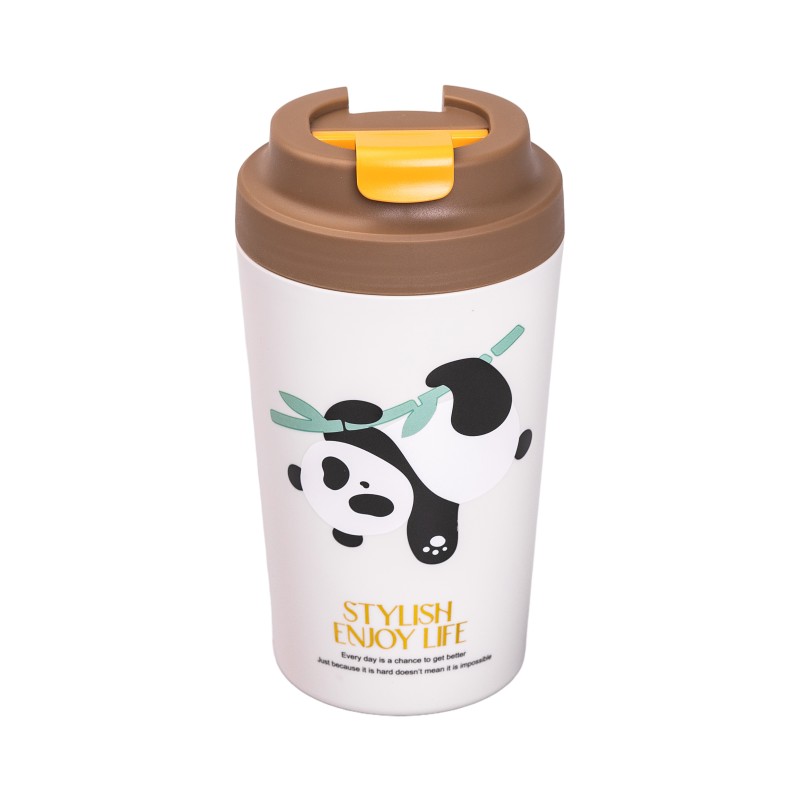 Така конструкція ідеально підходить для кави, чаю чи інших напоїв, зберігаючи їх свіжість і температуру. Компактні розміри (висота 16,3 см, діаметр 6 см) дозволяють легко носити чашку в сумці або рюкзаку, а стильний дизайн із зображенням панди надає їй особливого шарму. Термочашка Panda стане чудовим вибором для дому, офісу або подорожей, поєднуючи функціональність із привабливим зовнішнім виглядом.
