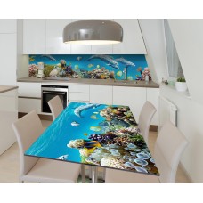 Наклейка 3Д вінілова на стіл Zatarga «Добрі дельфіни» 600х1200 мм для будинків, квартир, столів, кав'ярень.