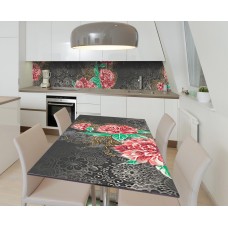 Наклейка 3Д вінілова на стіл Zatarga «Алмазні півонії» 600х1200 мм для будинків, квартир, столів, кав'ярень.