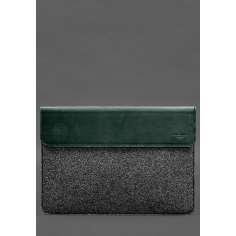 Чохол-конверт із клапаном шкіра+фетр для MacBook 16 Зелений Crazy Horse BlankNote