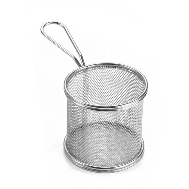 Оригінальний кошик для подачі снеків поєднує стильний вигляд та практичність. Виготовлена з нержавіючої сталі з гальванічним покриттям, вона відрізняється високою міцністю та довговічністю. Компактні розміри дозволяють зручно подавати порційні закуски, зберігаючи їхній привабливий вигляд. Кошик ідеально підходить для картоплі фрі, чіпсів, хлібних паличок та інших закусок. Його міцний металевий каркас забезпечує стійкість та легкість, а покриття захищає від вологи та зносу. Завдяки цьому аксесуар добре підходить як для домашнього використання, так і для сервірування у кафе чи ресторанах. Кошик легко чиститься і не потребує складного догляду. Її конструкція дозволяє швидко видаляти залишки їжі, що робить використання максимально зручним. Це універсальне рішення для ефектної подачі закусок у будь-якому інтер'єрі.