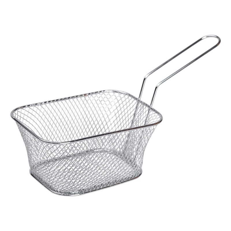 Кошик для сервірування фрі та снеків розміром 14*10,5*6,5 см - це стильний та практичний аксесуар для ефектної подачі улюблених закусок. Вона ідеально підходить для картоплі фрі, курячих нагетсів, кілець кальмарів та інших снеків, надаючи ресторанного вигляду вашим стравам. Завдяки продуманій конструкції, кошик зручний у використанні та допомагає зберігати їжу теплою під час подачі. Виготовлений з високоякісної нержавіючої сталі, цей кошик має високу міцність, стійкість до корозії і витримує вплив високих температур. Гальванічне покриття забезпечує додатковий захист від механічних пошкоджень та покращує естетику виробу, надаючи йому стильного вигляду. Завдяки своїм характеристикам, кошик можна використовувати не лише вдома, а й у кафе, барах чи ресторанах для подачі страв у сучасному форматі. Компактний та зручний у використанні, цей аксесуар легко миється та зберігається, не займаючи багато місця. Він стане чудовим доповненням до кухонного інвентарю, допомагаючи сервірувати закуски красиво та зручно. Його універсальний дизайн дозволяє комбінувати кошик із різними серветками або папером для подачі, що додає оригінальності вашим стравам.