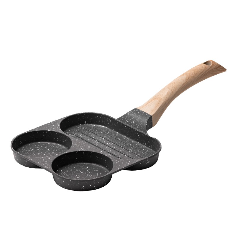 Сковорода для сніданку з антипригарним покриттям стане вашим незамінним помічником для приготування смачних і різноманітних страв. Виготовлена з високоякісного алюмінію, ця сковорода має три секції, що дозволяє готувати різні інгредієнти одночасно. Одна прямокутна секція об'ємом 220 мл і дві круглі секції по 120 мл кожна ідеально підходять для створення збалансованого сніданку, задовольняючи потреби всієї родини.