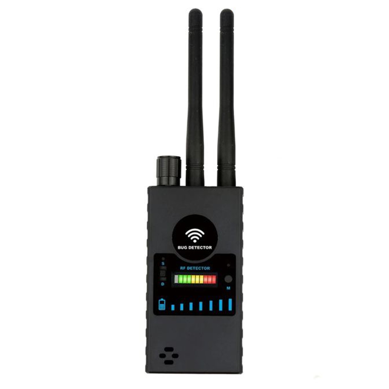 Детектор прослуховування, бездротових камер, постійних магнітів, жучків, 1 MHz - 8 GHz Protect G528 - дозволить виявляти радіопередаваючі пристрої, що працюють на частоті 1,2 / 2,4 / 5,8 ГГц. Використовується для виявлення місця розташування прихованих бездротових камер, бездротових мікрофонів і підслуховуючих пристроїв на базі мобільних телефонів. Основною особливістю даної моделі можна назвати можливість виявлення мікрофонів і камер (бездротового типу передачі даних) в широкому діапазоні частот, автономне живлення, можливість виявляти магніти і співвідношення ціна / функціонал / якість. Детектор поля визначає місцезнаходження камер або радіозакладок за допомогою випромінюваного камерою або мікрофоном радіовипромінювання під час передачі інформації. Завдяки широкому діапазону робочих частот від 1 МГц до 8000 ГГц, детектор здатний виявляти камери і «радіозакладки» які працюють на загальній частоті 1,2 ГГц, 2,4 ГГц і навіть 5,8 ГГц. Завдяки комбінуванню властивостей і різних робочих частот відпадає потреба мати 2-3 окремих пристрої для пошуку бездротових камер і мікрофонів, які працюють на різних частотах. Наявність двох антен RF і GSM дозволяє більш ґрунтовно шукати радіопередаваючі пристрої, що передають на різних частотах в одному приміщенні, так як детектор отримує дані відразу від обох антен. До переваг даної моделі варто віднести високу чутливість детектора і миттєву реакцію на зміну сили радіосигналу. В базових принципах роботи, даний детектор не відрізняється від своїх побратимів і працює за загальним принципом - чим ближче до джерела сигналу, тим шкала виявлення вище. Детектор дозволяє виявляти мобільні передавальні пристрої з 2G, 3G і 4G SIM картами. Важливим є і можливість детектора виявляти постійне магнітне поле постійних магнітів. З його допомогою можна виявити пристрої які мають в корпусі магніти, а такі прилади як GPS трекер мають магніт в корпусі, для зручності кріплення. Деякі диктофони і мікрофони мають магнітну підставку або частину корпусу. Даний детектор дозволяє виявляти «підслушку» не просто по «силі радіовипромінювання», а й за типом кріплення. Прилад має прямокутну форму корпусу і виконаний з пластика. У верхній частині корпусу розташовані дві окремі антени, індикатор магнітного датчика і регулятор чутливості детектора. Цей же регулятор чутливості використовується для включення і виключення приладу. На передній стороні розташований відділ з 10 рівнями сили випромінювання сигналу, магнітний датчик, 2 кнопки управління, індикатор заряду батареї і динамік. У нижній частині детектора знаходиться Micro USB роз'єм для можливості зарядки вбудованого акумулятора. Вбудований акумулятор, при повному заряді, здатний забезпечити роботу приладу протягом 8-12 годин (в залежності від навколишньої температури). Оповіщення про силу виявленого радіовипромінювання відбувається за допомогою звукового і світлового сигналів, також є доступне оповіщення за допомогою вібрації. Прилад зручний для роботи в невеликих приміщеннях, таких як офіс, сауна, кімната в готелі, кімната переговорів та інших приміщеннях, де існує можливість витоку конфіденційної інформації. Основні особливості Професійний пристрій для виявлення радіопередавальних пристроїв. Можливість виявлення GPS передавальних пристроїв (в момент передачі даних). Можливість вияв