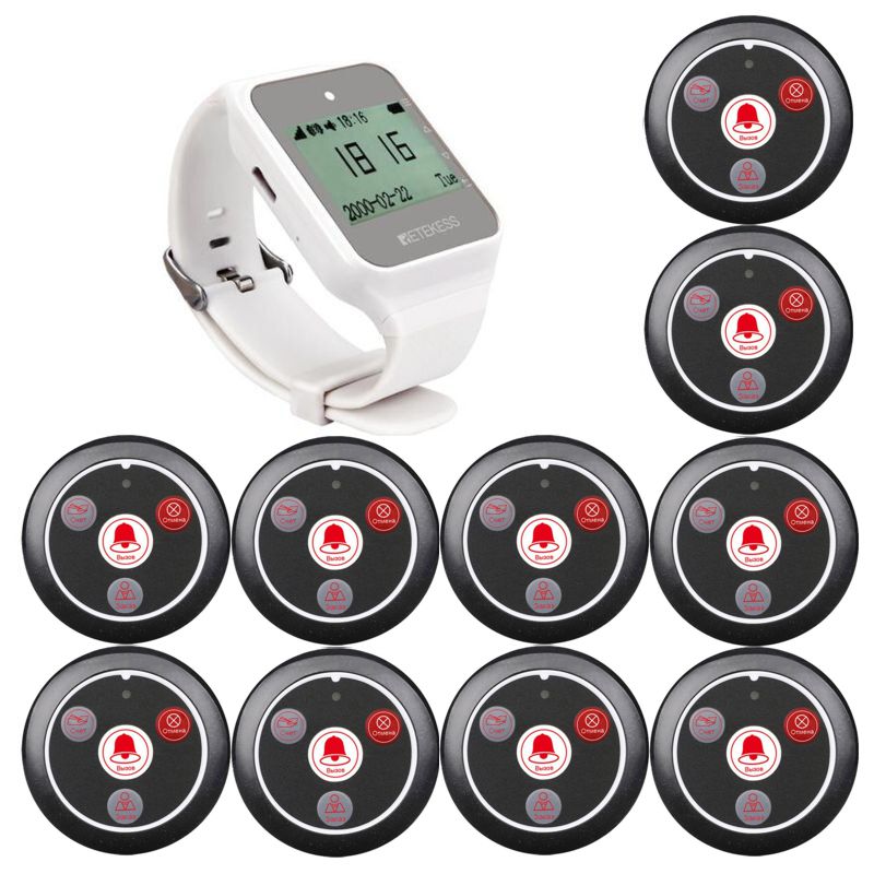 Система виклику офіціанта бездротова з годинником - пейджером Retekess TD109 + 10 чорних кнопок (з кнопкою ЗАКАЗ)