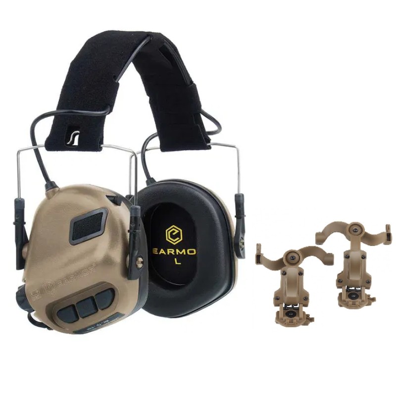 Тактичні навушники EARMOR М31 та кріплення на шолом OPS Core чебурашка Койот (2046553881)