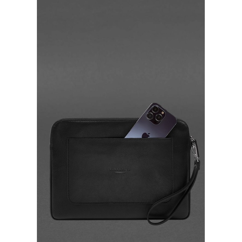 Шкіряний чохол для ноутбука на блискавці з кишенею та хлястиком на руку Чорний BlankNote