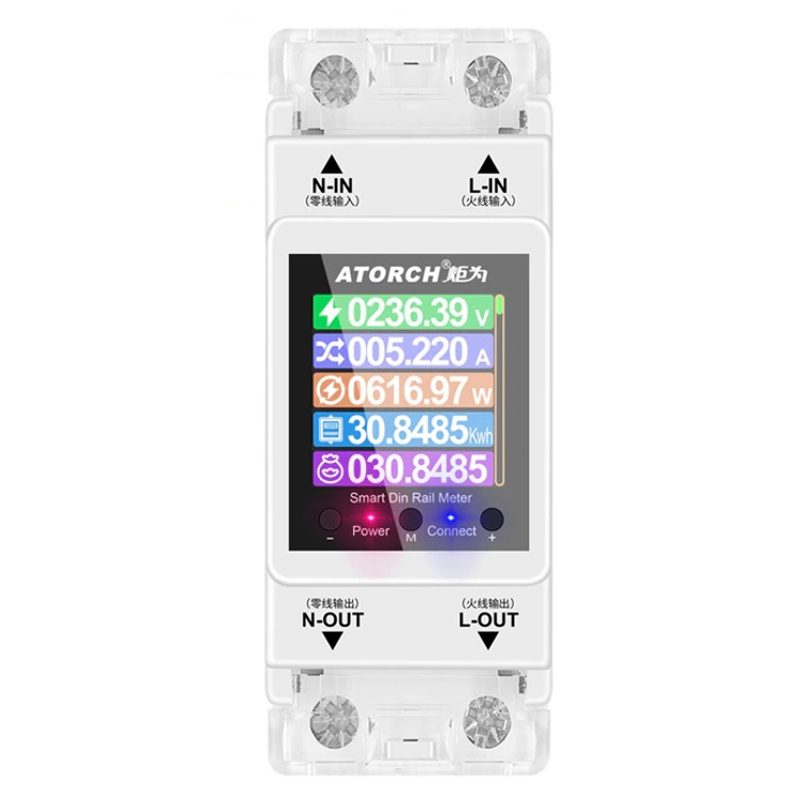 Розумний лічильник електроенергії з wifi, екраном та 4-ма видами захисту на DIN рейку до 100 ампер Atorch AT2PW